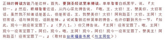 圣经是神用我们的理智和思想能明白的语言向我们启示他自己,有严谨的结构、顺序和内容。读圣经最忌讳的就是断章取义和篡改加减内容,但是祷读偏偏最不在乎的就是圣经的言语内容顺序和结构,故意把圣经经文“短”、“断”成一个短语、一个词、一个字,这完全是为了催眠的需要,而不是从为了寻求真理,明白神的旨意。